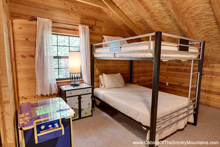 • A one‑bedroom layout featuring a queen bed and a full over‑full bunk bed—perfect for families or small groups.