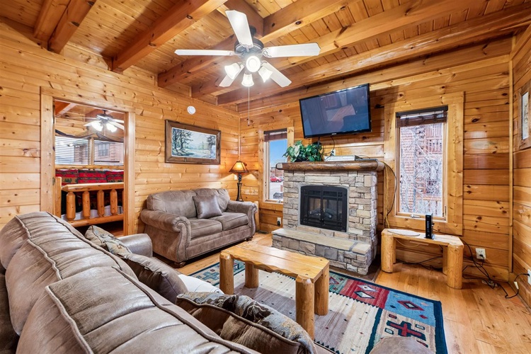 Tucked into The Preserve Resort high above Wears Valley, Fantasy in the Sky is a luxurious 2-bedroom, 2-bathroom cabin that sleeps up to 10 guests. Boasting sweeping Smoky Mountain vistas, a gorgeously finished interior, and access to resort amenities, it’s the perfect elevated retreat for families, friends, or romantic escapes.