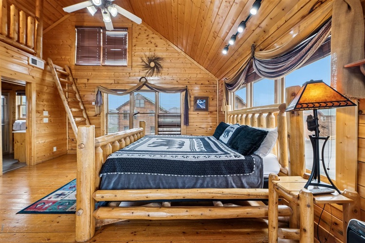 Two king bedrooms (one on each level) plus a loft with two full beds up the ladder for kids and a queen sleeper sofa in the main level living room offer flexible, restful accommodations for everyone.