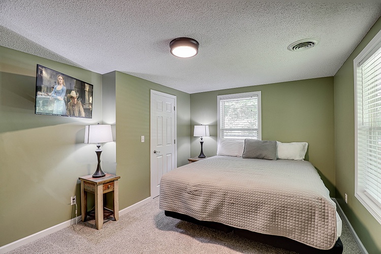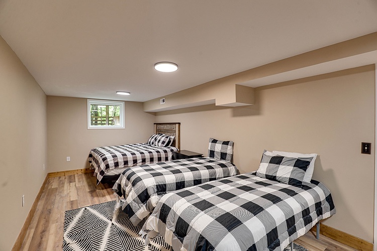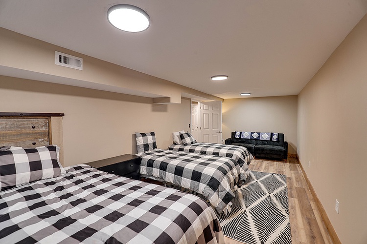 Five bedrooms (kings, queens, and snug loft options) and three bathrooms provide flexible sleeping arrangements, ideal for families or multi-generational stays.