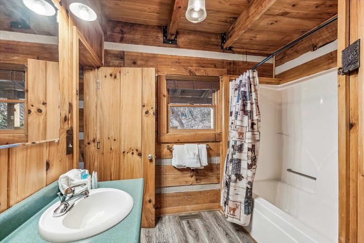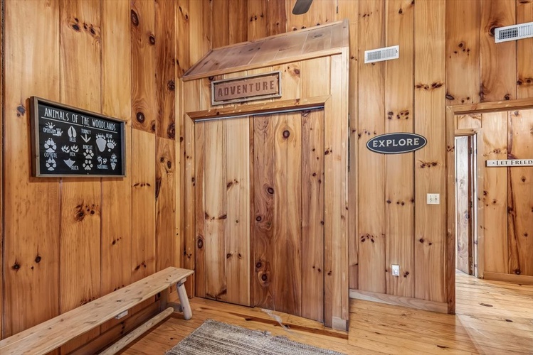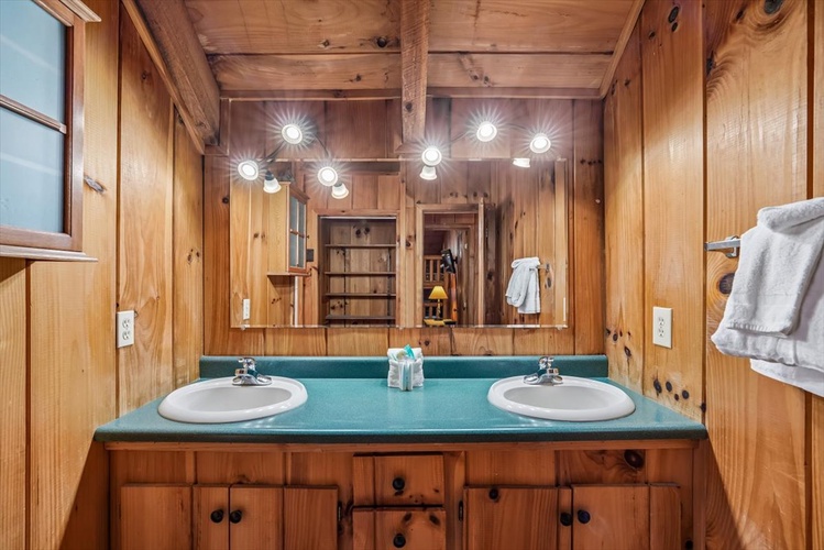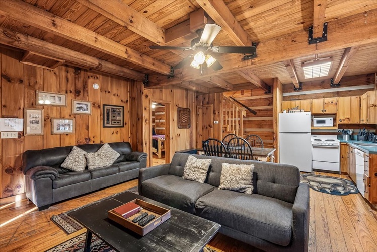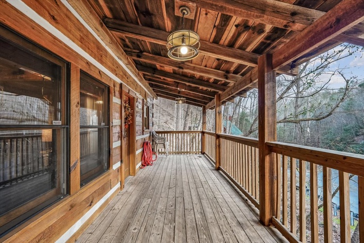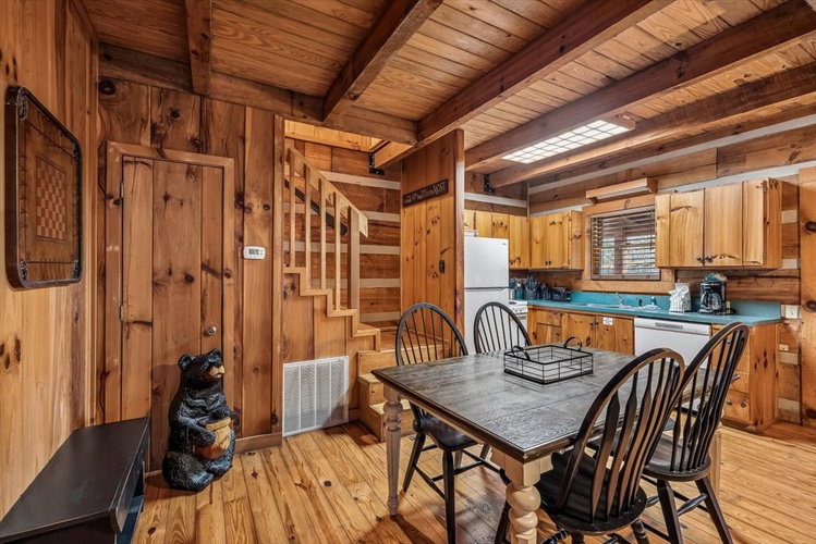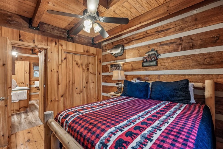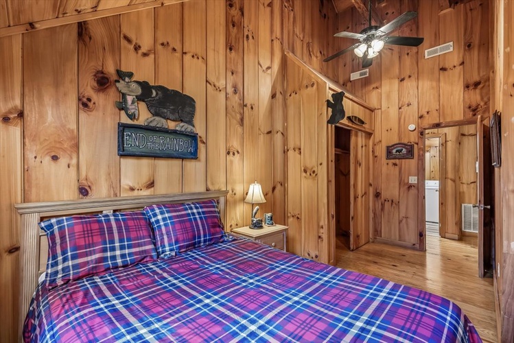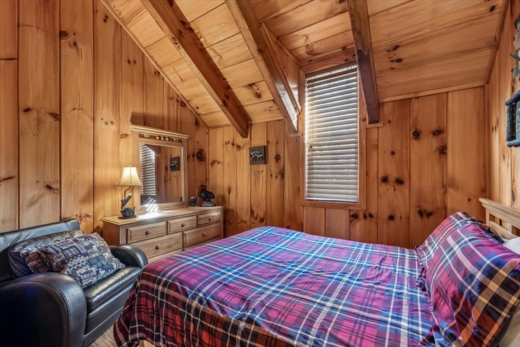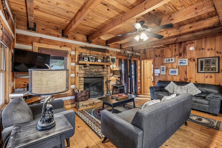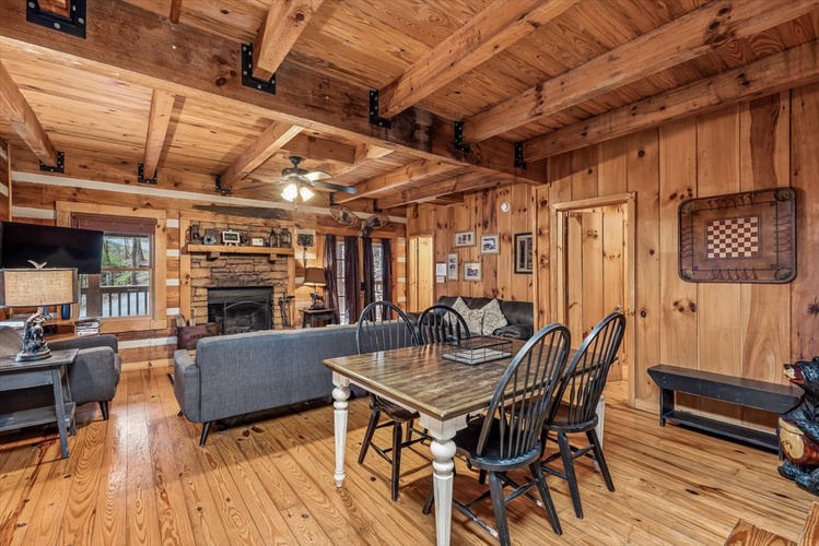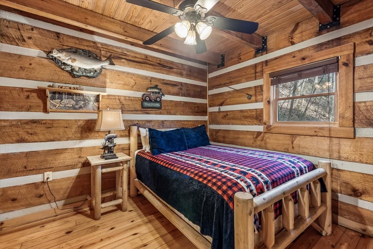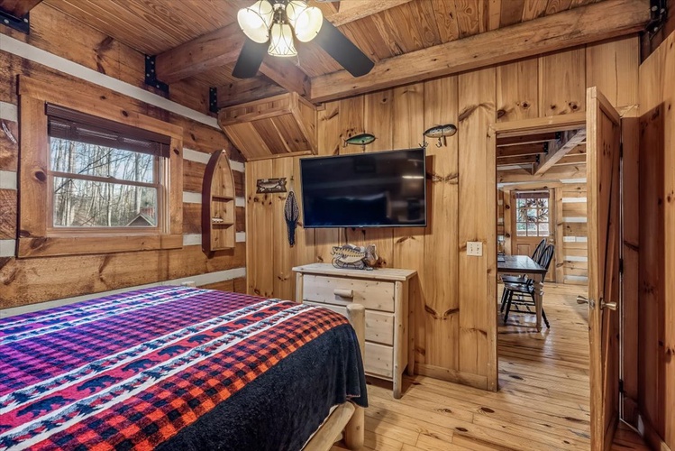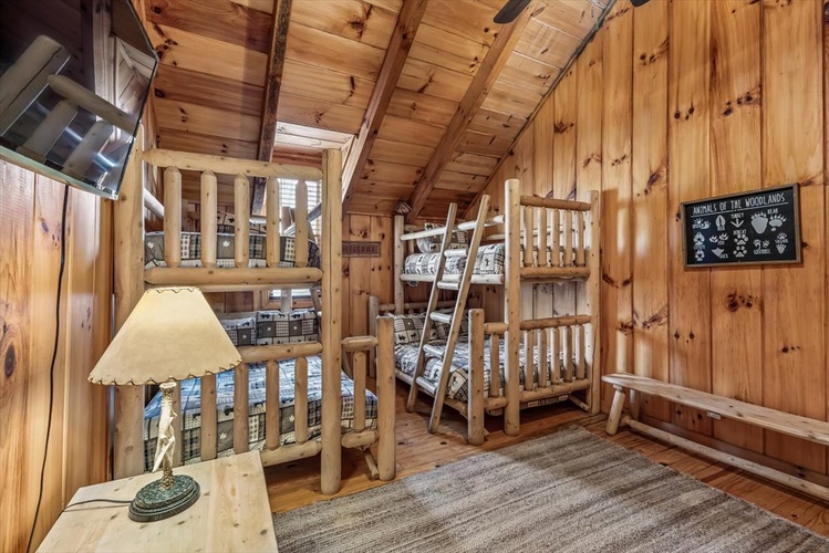 Key Features- Comfortable Accommodations: The cabin features three bedrooms, including a queen-sized bed in the first-floor bedroom and two queen-sized beds in the second-floor bedrooms, ensuring ample sleeping arrangements for all guests.