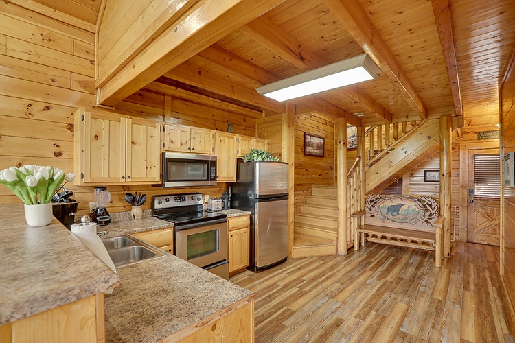 - Modern Conveniences: The cabin includes a fully equipped kitchen, washer and dryer, complimentary Wi-Fi, and multiple flat-screen TVs with cable/satellite channels.
