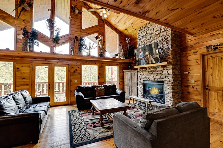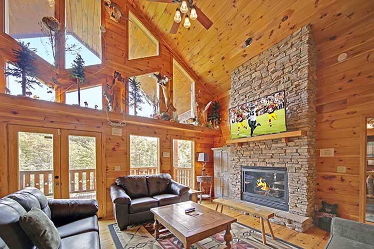 Floor-to-ceiling windows and multiple wraparound decks showcase uninterrupted Smoky Mountain panoramas. Relax alone or gather in the hot tub under the canopy of blue skies. - Comfortable Sleeping & Plush Interiors