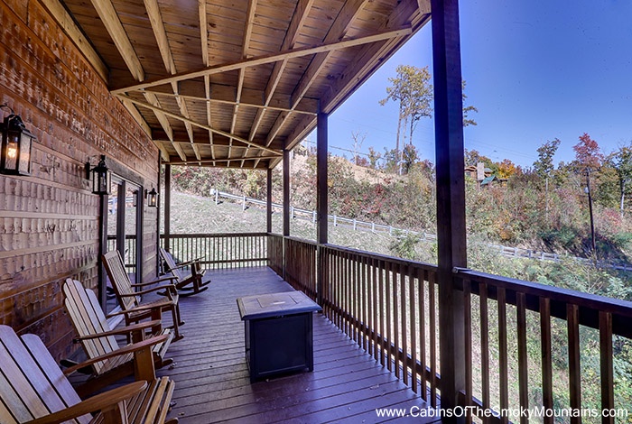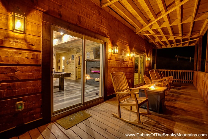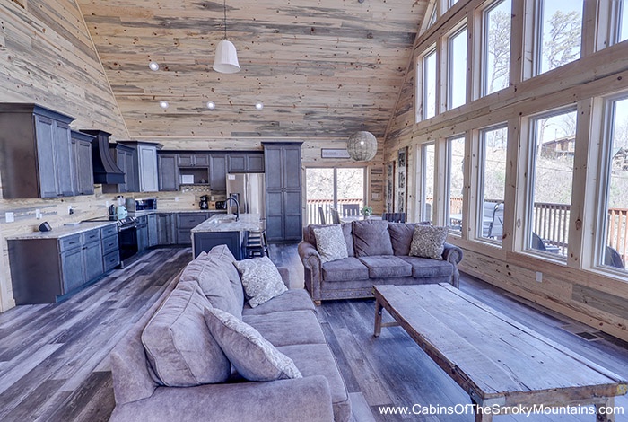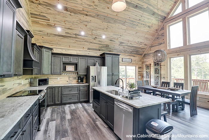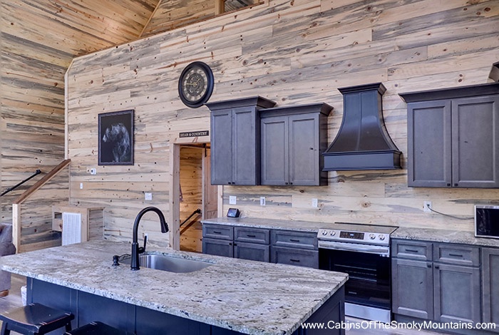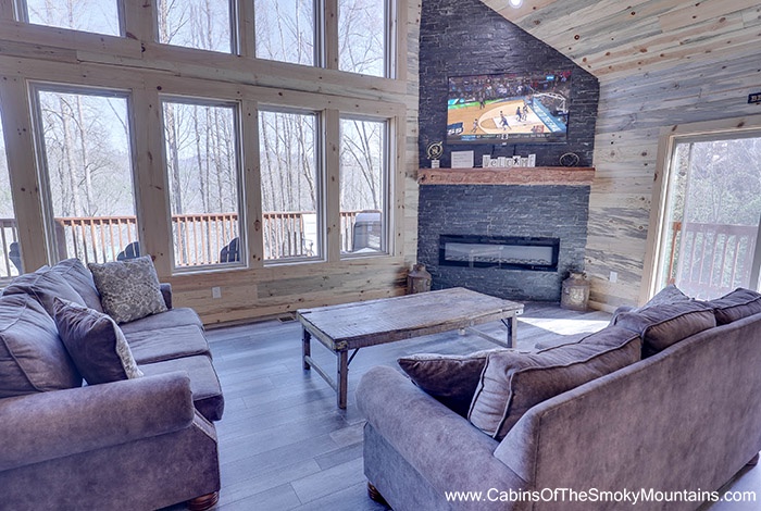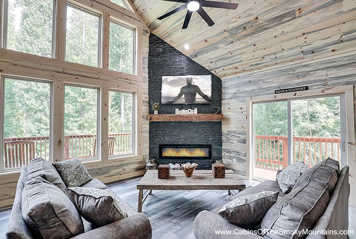 Cook in the expansive chef-style kitchen, cozy up beside the electric fireplace, and soothe your soul with music via Bluetooth speakers throughout the cabin. - Outdoor Relaxation & Views