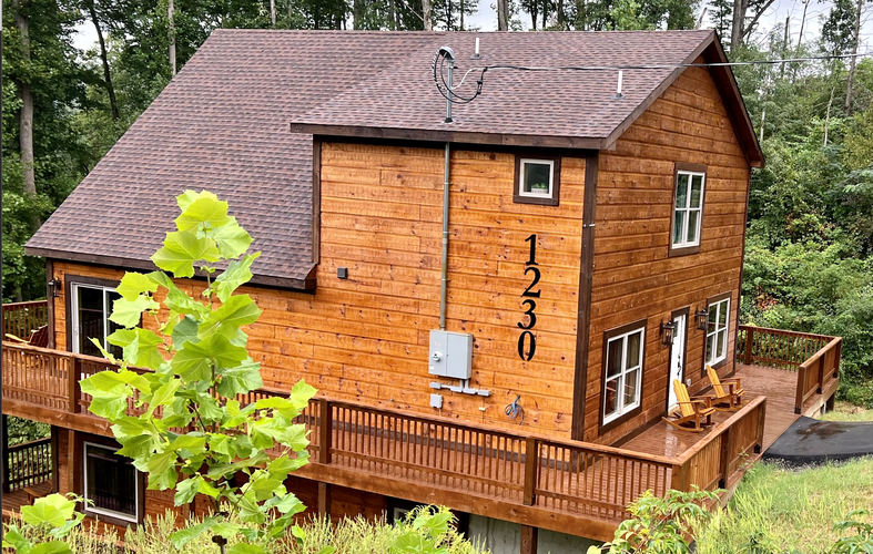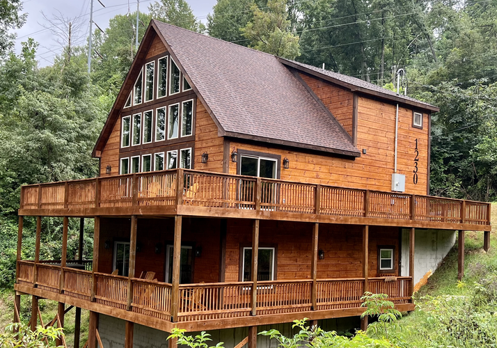 Nestled in Chalet Village between Gatlinburg and Pigeon Forge, Honey Hole is a sophisticated 4-bedroom, 3-bathroom cabin that accommodates up to 14 guests. This newly built retreat combines upscale amenities with prime location and easy access to the Smokies.