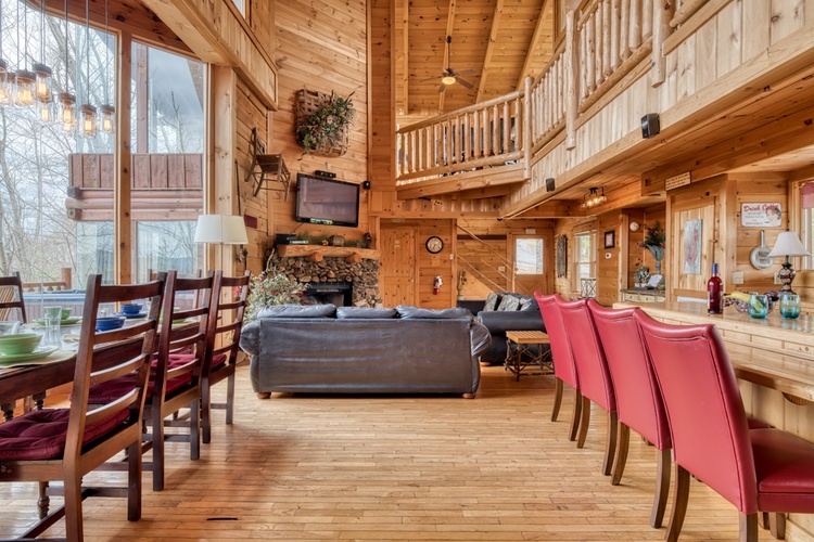 - Outdoor Relaxation: Unwind on the wrap-around porch, soak in the hot tub, or settle into the rocking chairs to enjoy the great outdoors and mountain views.