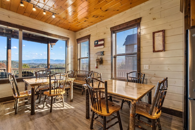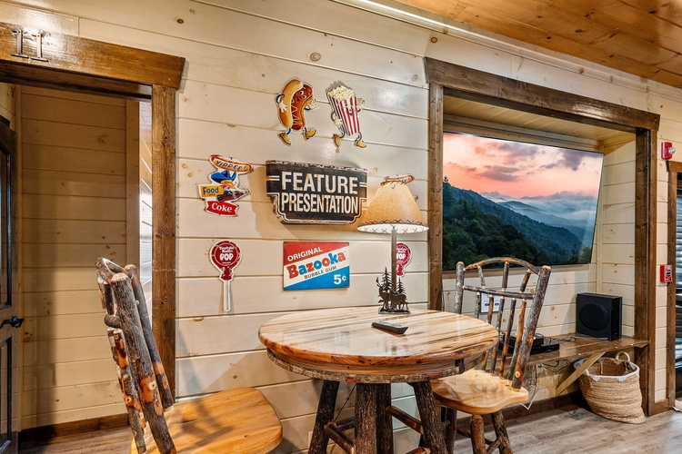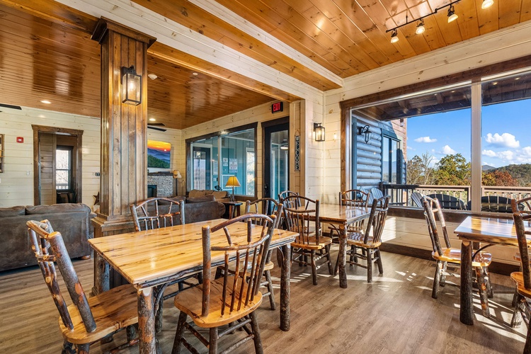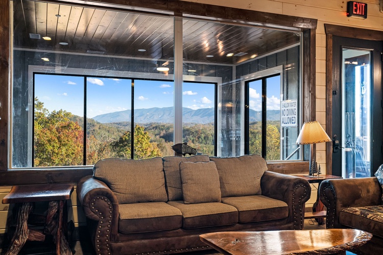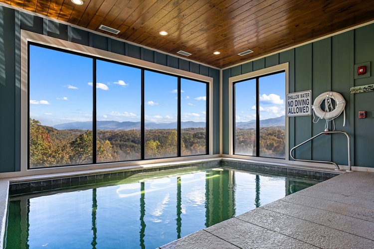 Enjoy year-round aquatic relaxation in a full‑size private indoor swimming pool that overlooks breathtaking views of Mount LeConte. - Entertainment Galore