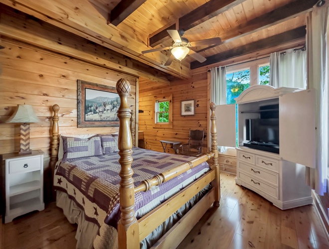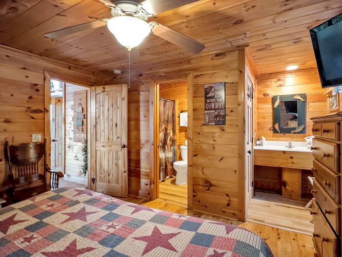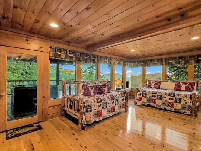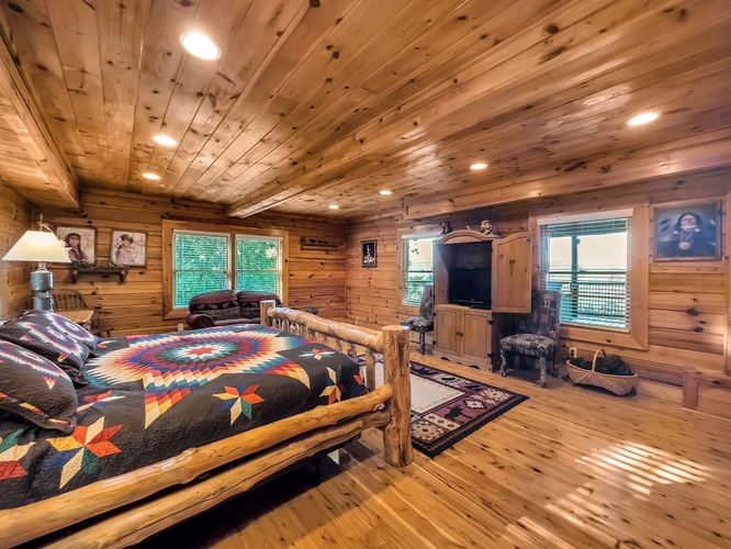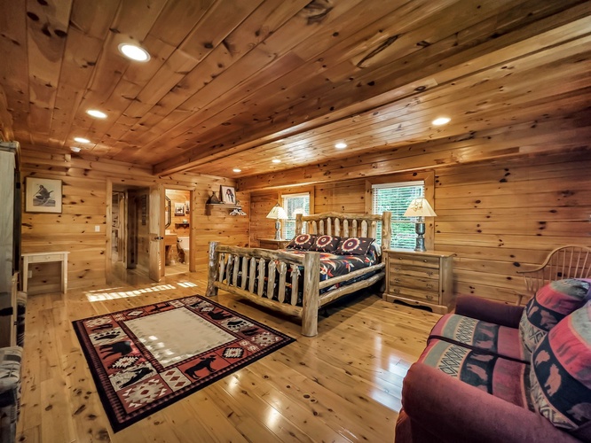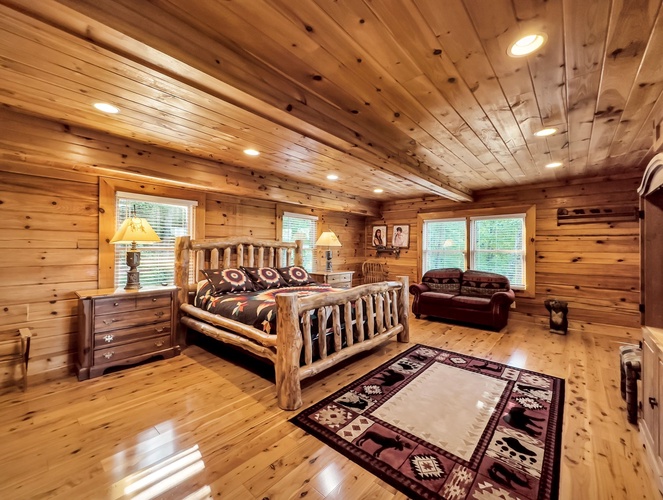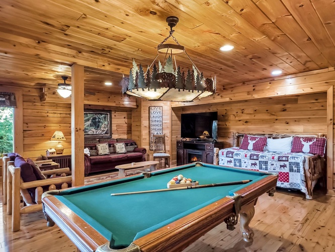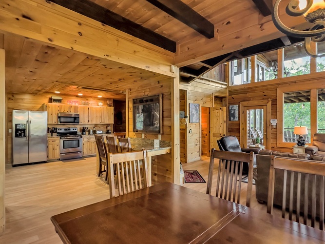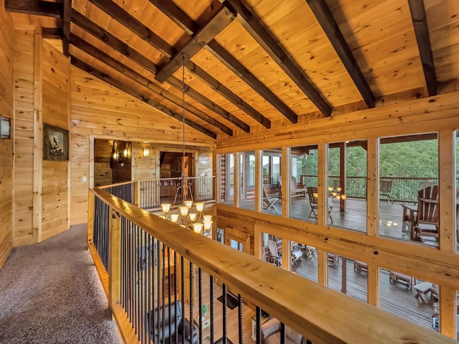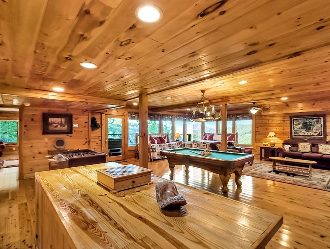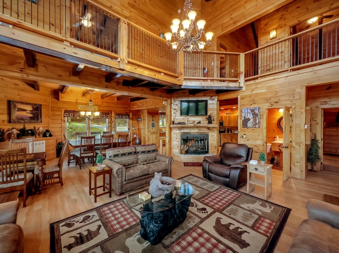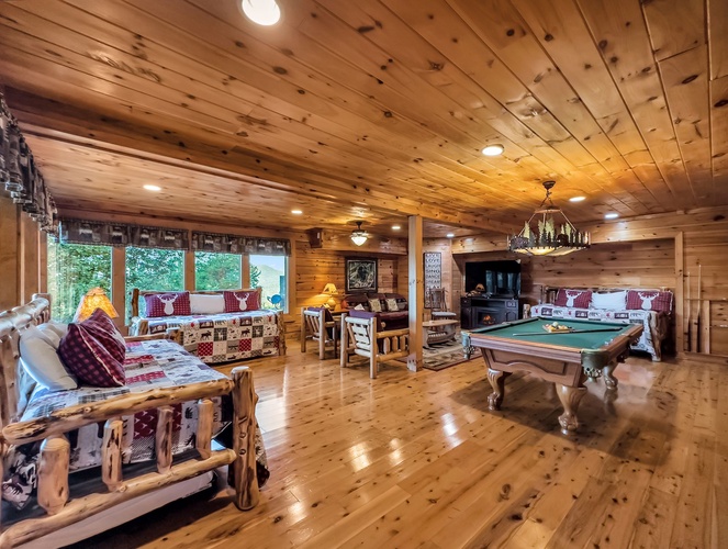 Key Features- Accommodations: The cabin offers a variety of sleeping arrangements with four king-sized beds, three queen-sized beds, and three twin/trundle beds, ensuring ample space for all guests. Each bedroom is equipped with a private bath, and select rooms feature televisions and access to private decks.