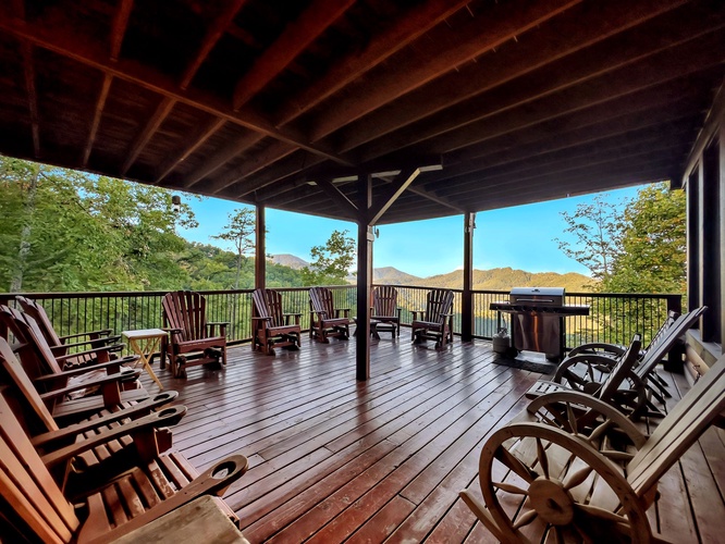 - Outdoor Amenities: Enjoy the expansive porches with rocking chairs, a hot tub, and a gas grill. The outdoor space is ideal for unwinding and taking in the mountain scenery.
