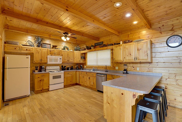 - Modern Conveniences: The cabin includes a fully equipped kitchen, washer and dryer, complimentary Wi-Fi, and multiple flat-screen TVs with cable/satellite channels.