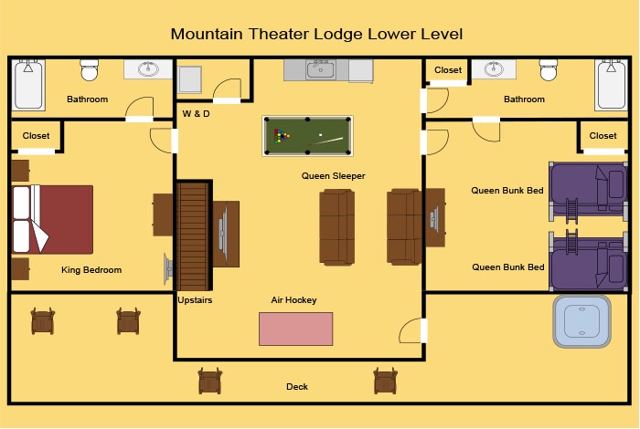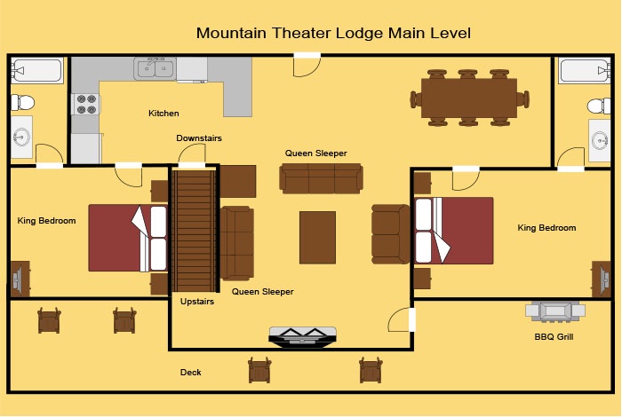 Experience luxury and entertainment at Mountain Theater Lodge, a spacious 6-bedroom, 6-bathroom cabin nestled in the heart of the Smoky Mountains near Pigeon Forge. Accommodating up to 24 guests, this exquisite retreat offers a perfect blend of comfort, modern amenities, and scenic beauty, making it an ideal choice for families and groups seeking a memorable getaway.