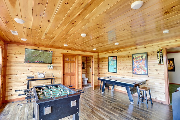 Game room with pool table, air hockey, foosball, multicade arcade, and a home theater ensures nonstop fun for kids and adults alike.
