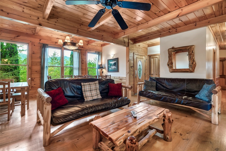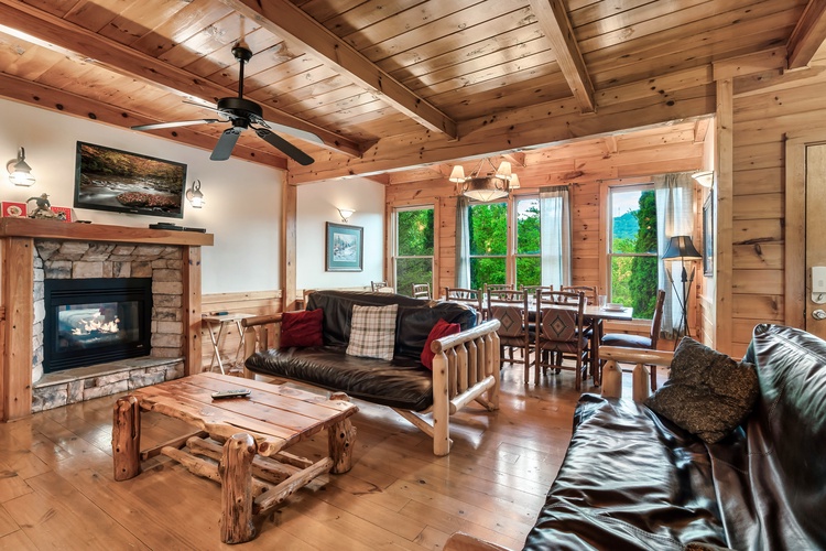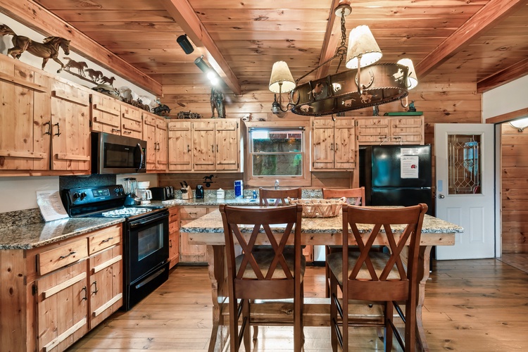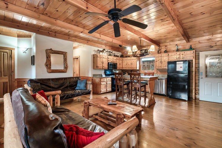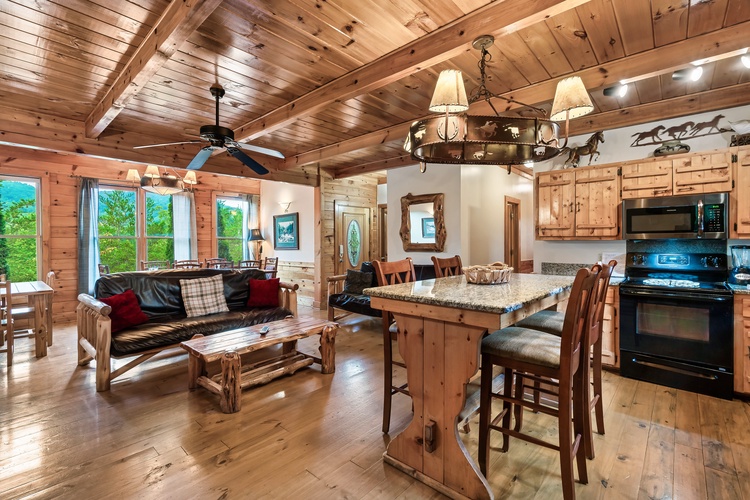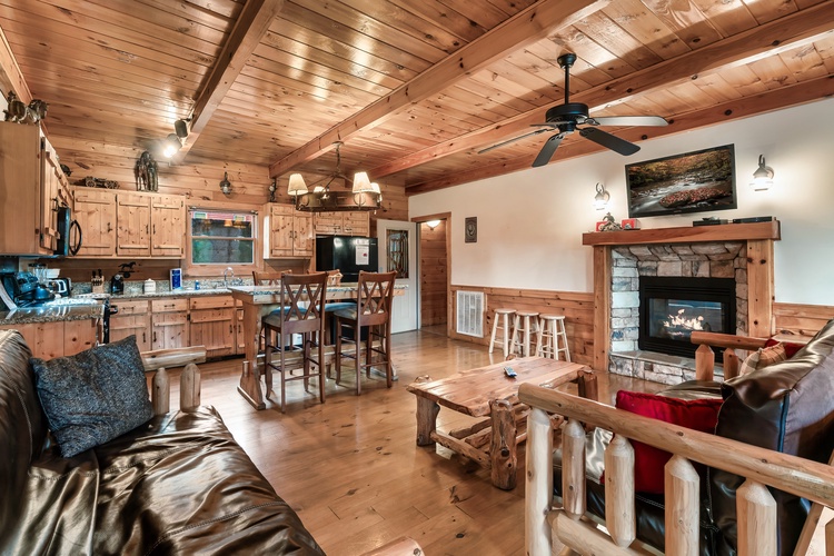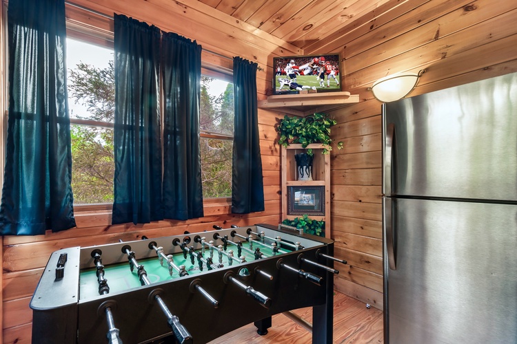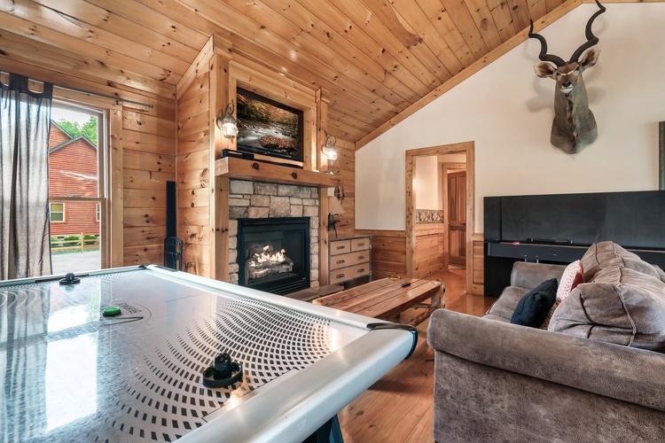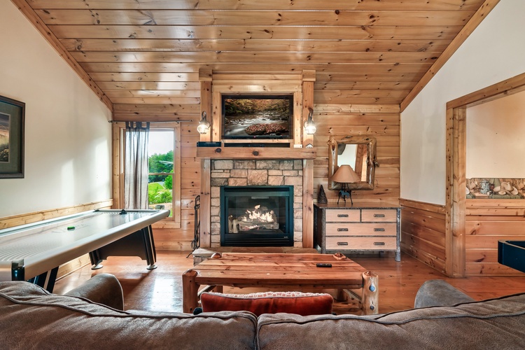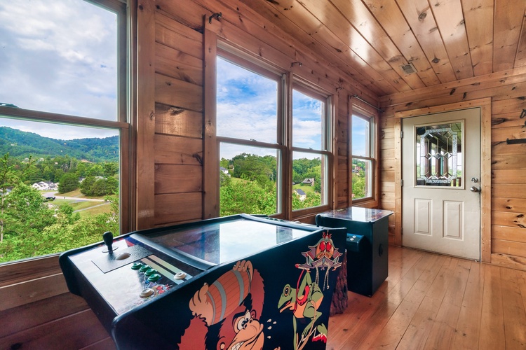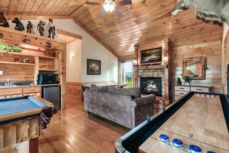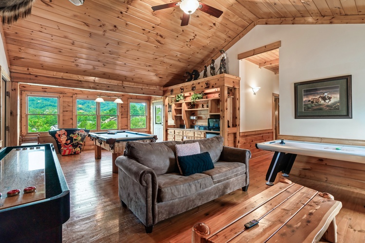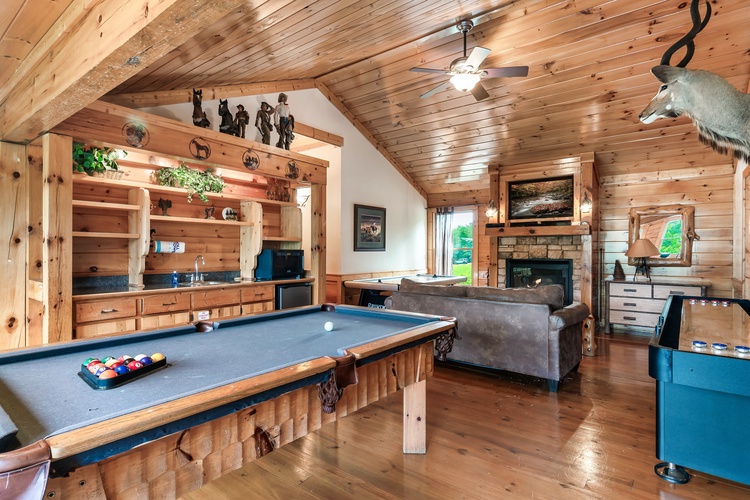 Equipped with a game room featuring pool table, air hockey, shuffleboard, foosball, and a multicade arcade system, this cabin entertains guests of every age.