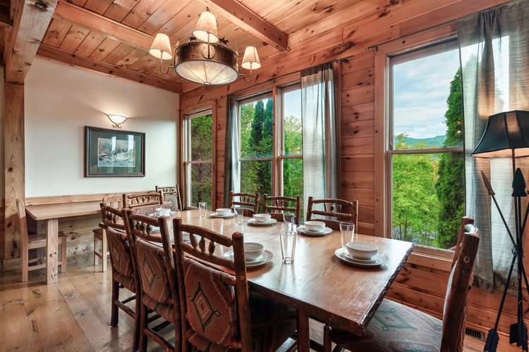 Tucked into scenic terrain just outside Pigeon Forge, Pigeon Forge Retreat is an expansive 9-bedroom, 9-bathroom cabin that accommodates up to 32 guests. With spacious living areas, a game-rich layout, and Smoky Mountain vistas, this property blends group-friendly comfort with resort-style perks and ideal access to the area's attractions.