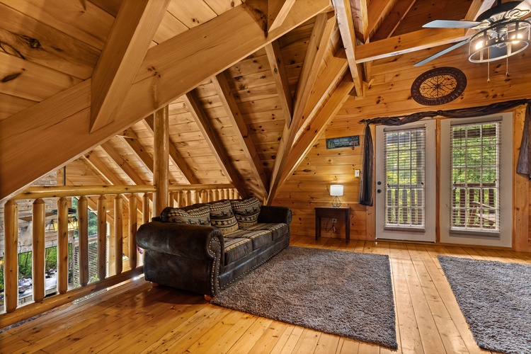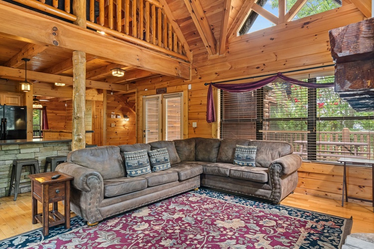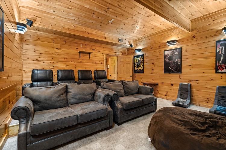 Ridgetop Theater Lodge is a spacious 4-bedroom, 4-bathroom cabin nestled in the scenic Smoky Mountains, offering a luxurious retreat for families or groups seeking both relaxation and entertainment. Located just minutes from Pigeon Forge, this cabin comfortably accommodates up to 14 guests, providing a perfect blend of rustic charm and modern amenities.