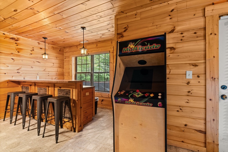 - Entertainment Options: Enjoy a variety of entertainment options with a home theater system featuring comfortable sofa seating, a pool table, air hockey, and a multicade arcade game system.