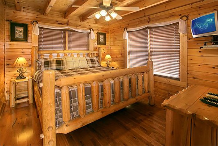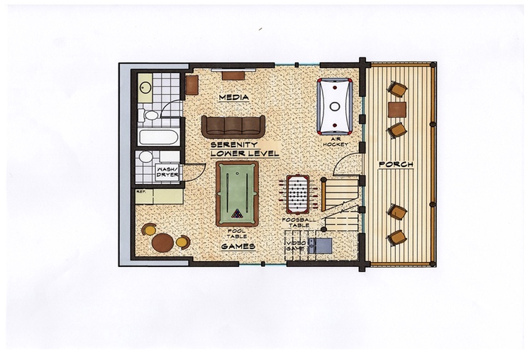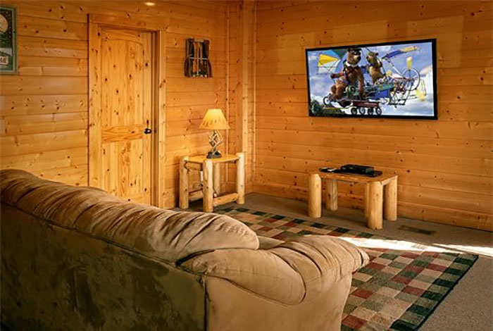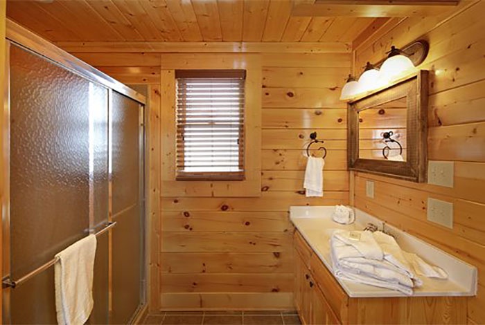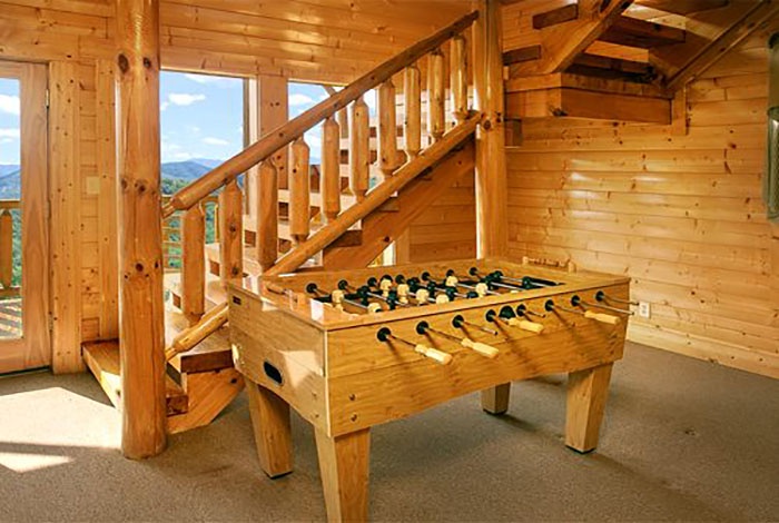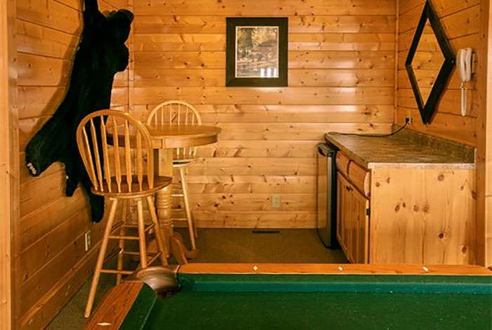 Serenity strikes the perfect balance between lively entertainment and mountain tranquility—pool games after a trail hike, hot tub relaxing under starlight, and decking out in front of the fire with loved ones. This cabin offers a charming, well-rounded Smoky Mountain experience. Contact us today to reserve your stay!