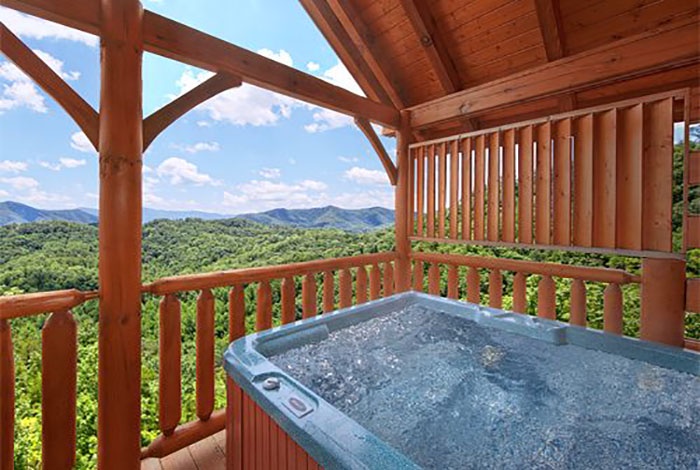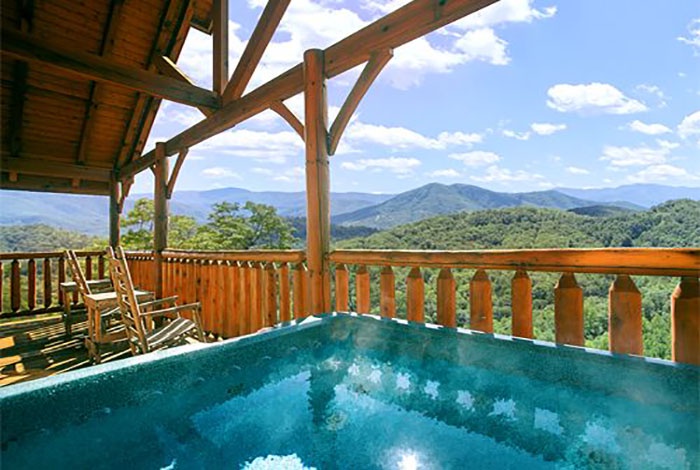 • Unwind in the private hot tub on the wraparound deck, framed by majestic mountain vistas and forested tranquility.