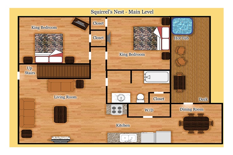 Squirrel’s Nest offers the perfect harmony of playful entertainment, forest serenity, and access to Smoky Mountain attractions. Whether you're gaming indoors, soaking in the hot tub under the stars, or venturing into the park, this cabin promises memories to cherish. Reach out today to reserve your cozy retreat!