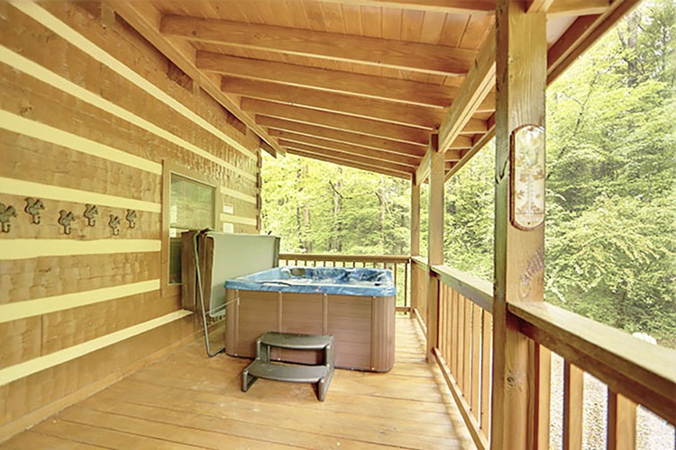 Unwind in the private jacuzzi/hot tub on one of three decks nestled in the forest. Gather around the outdoor fire pit or covered picnic pavilion for stargazing and toasted marshmallows. - Cabin Comfort & Style