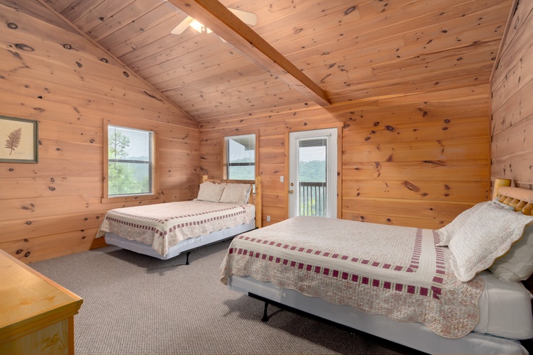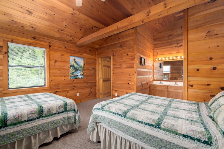 • Spacious Accommodations: The cabin boasts nine well-appointed bedrooms, including four with king-sized beds and five with two queen-sized beds each. Each floor offers ample sleeping arrangements, ensuring privacy and comfort for all guests.