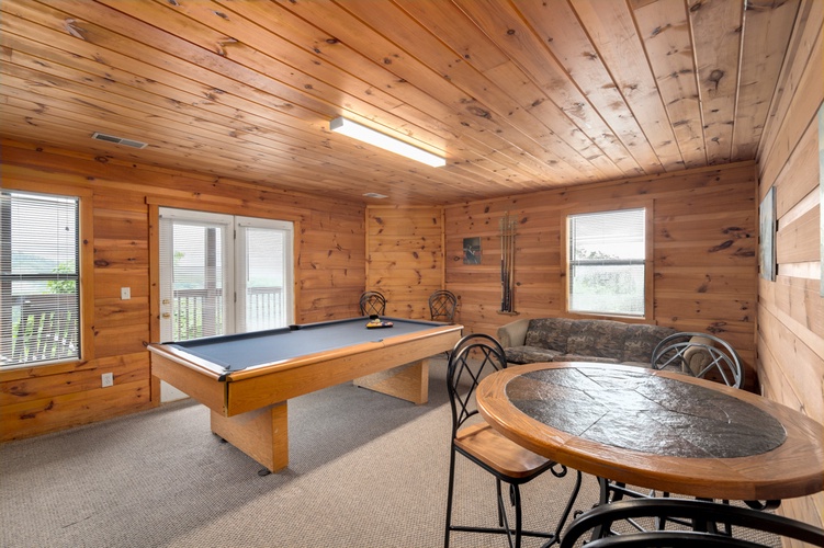 • Entertainment Options: The game room features a pool table, providing hours of entertainment for guests of all ages. The cabin also includes a sleeper sofa, perfect for additional sleeping arrangements.