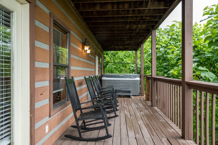 • Relaxation Spaces: All three levels of the cabin feature covered decks with rocking chairs, offering serene mountain views. The main deck includes a large hot tub, ideal for unwinding after a day of exploration.