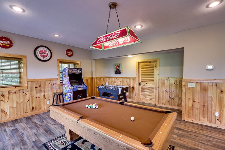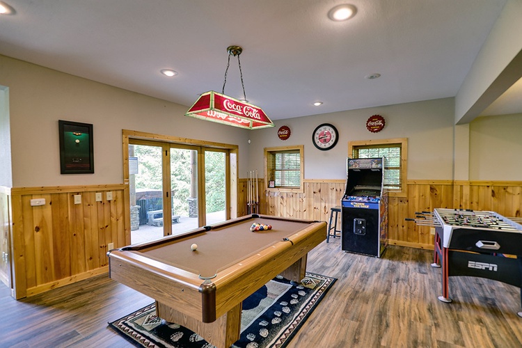 Challenge your group to a friendly match in the game room with a pool table and multicade arcade—a hub of laughter and friendly competition. - Relaxing Hot Tub & Outdoor Living