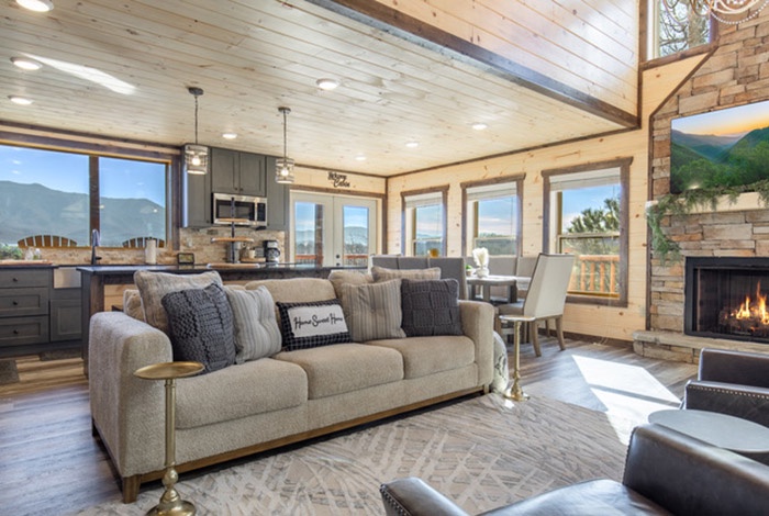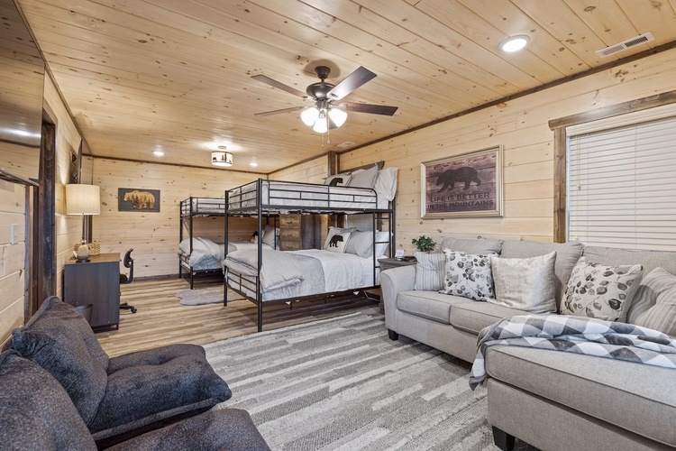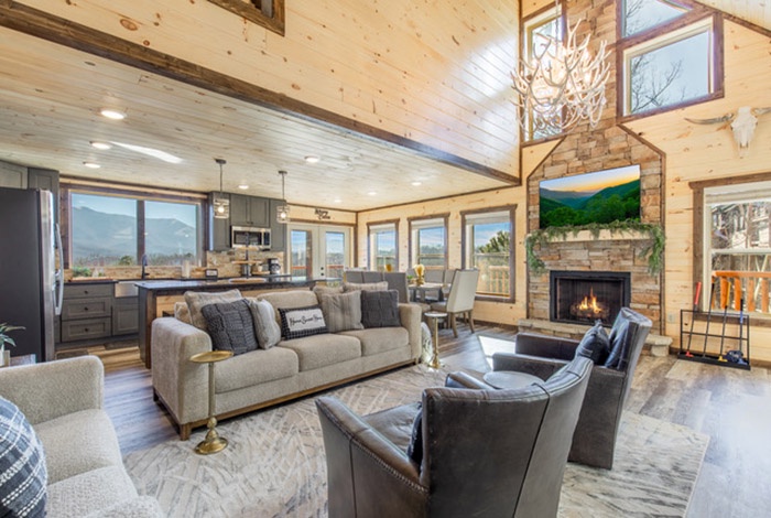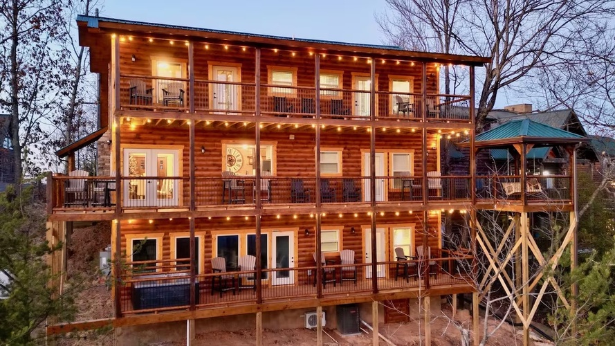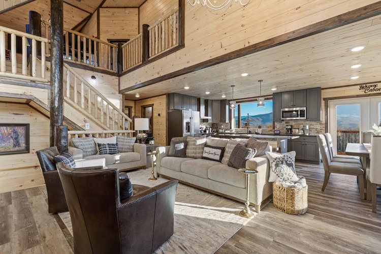 Perched in the exclusive Settlers Ridge Resort near Pigeon Forge, The Overlook at Settlers Ridge is a newly built (2023) 4-bedroom, 4-bath mountain retreat that sleeps up to 12 guests. This elevated haven combines luxurious entertainment spaces, panoramic Smoky Mountain vistas, and modern comforts for an unforgettable getaway.