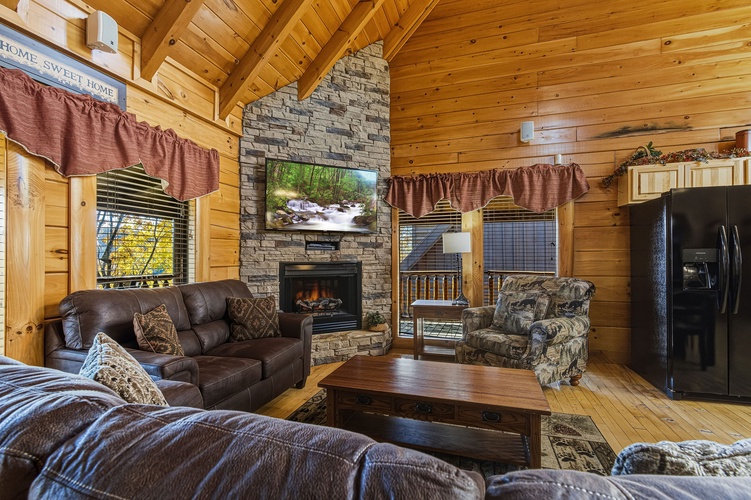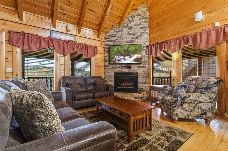 Located in Bear Creek Crossing, the cabin offers a serene setting while being just minutes from Pigeon Forge’s Dollywood, dinner shows, The Island, and Ripley’s Aquarium. - Gateway to Great Smoky Mountains National Park