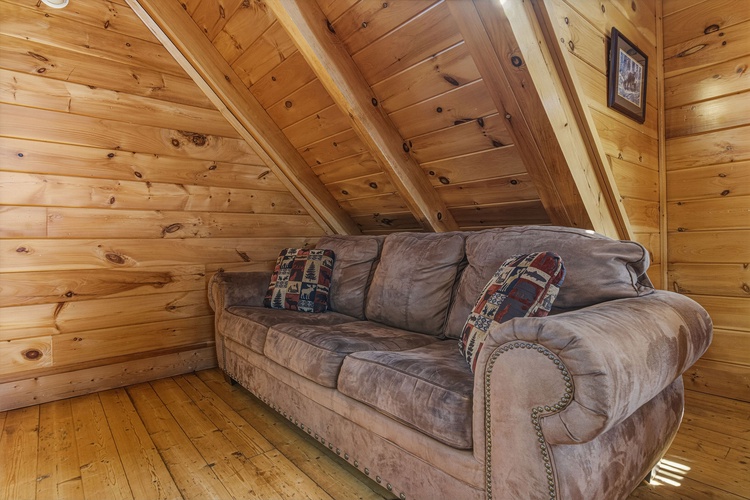 Tucked within Bear Creek Crossing Resort, The Wolf’s Den is a charming 2-bedroom, 2-bath retreat that sleeps up to 11 guests. This inviting cabin blends intimate mountain comfort with lively entertainment—ideal for couples, families, or small groups seeking a memorable Smoky Mountain getaway.