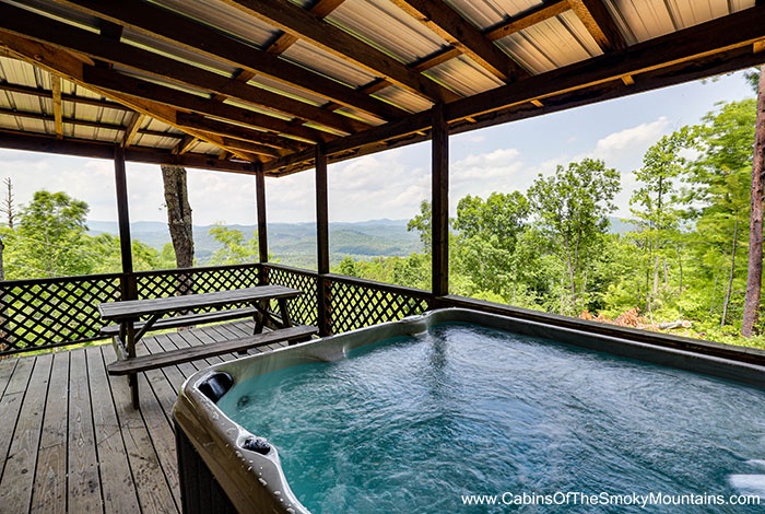 Unwind in the covered hot tub on the elevated deck surrounded by woodland, perfect for stargazing or sipping morning coffee with valley views. - Arcade & Gathering Area