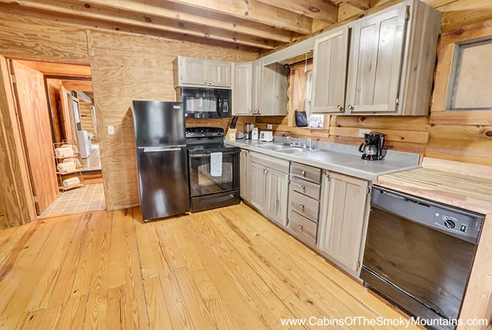 Enjoy a full kitchen, dishwasher, washer/dryer, cable TV, Wi‑Fi, central HVAC, and charcoal grill—blending convenience with rustic charm.