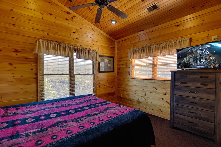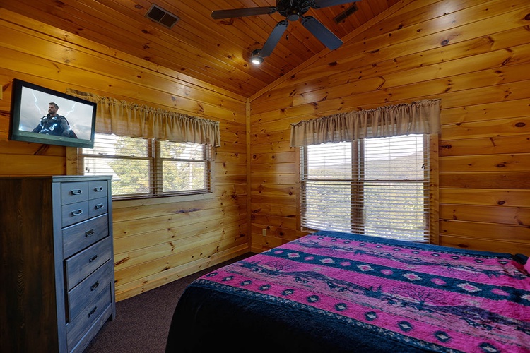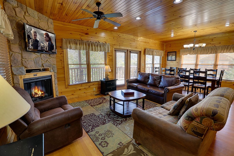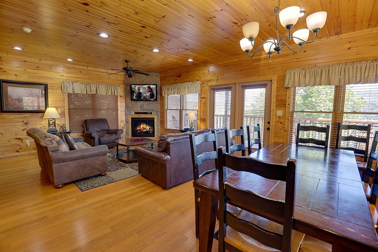 This upscale cabin blends upscale amenities and cozy comforts with sweeping Smoky Mountain panoramas — perfect for families, couples, or groups seeking luxury and adventure. Sleeps up to 10.
