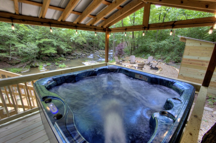 Soothe your muscles or enjoy a glass of wine while soaking in the hot tub, serenaded by the sound of rushing water just steps away. - Indoor Entertainment