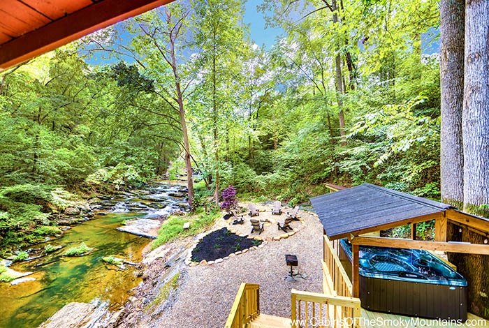 Step outside to an outdoor fire pit just beside stunning cascading waterfalls and a natural swimming hole—perfect for day lounging and evening chats under the stars. - Private Hot Tub Retreat